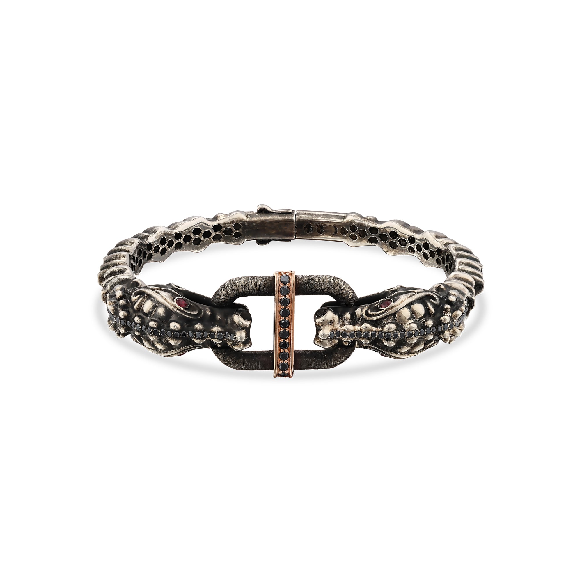 of power and protection. Its presence reignites your inner flame, guiding you toward brilliance and selfdiscovery. Golden accents meet the dark gleam of black diamonds, echoing a legacy of courage and mastery. Crafted for those who carve their own path and live with fearless grace.