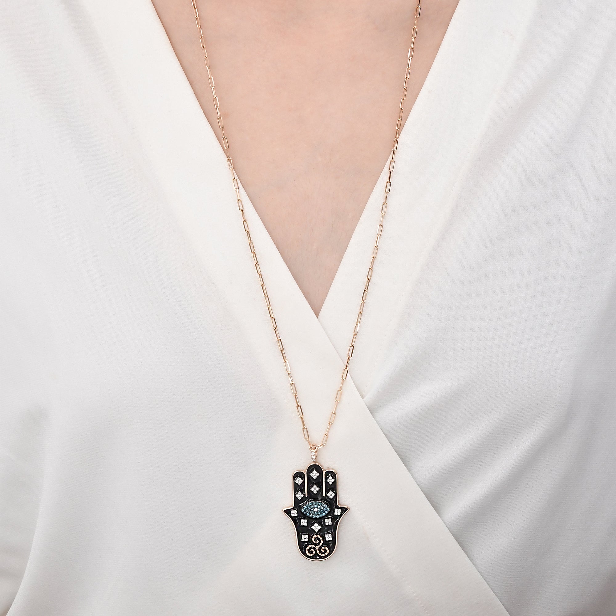 The hand of Fatima is an ancient talisman that symbolizes feminine power, protection, blessings, power and strength. It promotes healing and fosters miracles. Aligning a community on a universal energy field, the hand transmits the gifts of health, peace and restoration, not just to the wearer but also to those she keeps near.The hand is worn as a defense against negative energy.